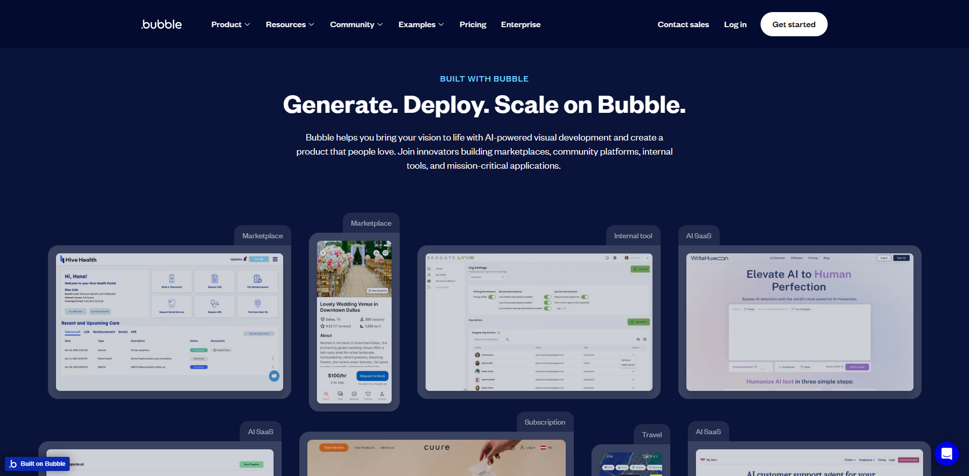 Bubble est un outil no-code conçu pour créer des applications web interactives sans compétences en programmation. Il propose une interface visuelle où l’on peut construire son application en glissant-déposant des éléments, tout en configurant la logique et les workflows.